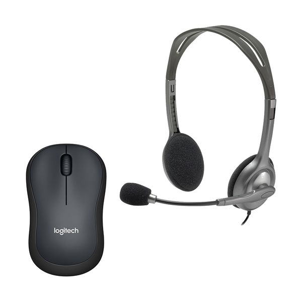 Σετ το οποίο αποτελείται από το ενσύρματο Logitech H111 Stereo Headset και από το ασύρματο M220 Silent Ποντίκι.