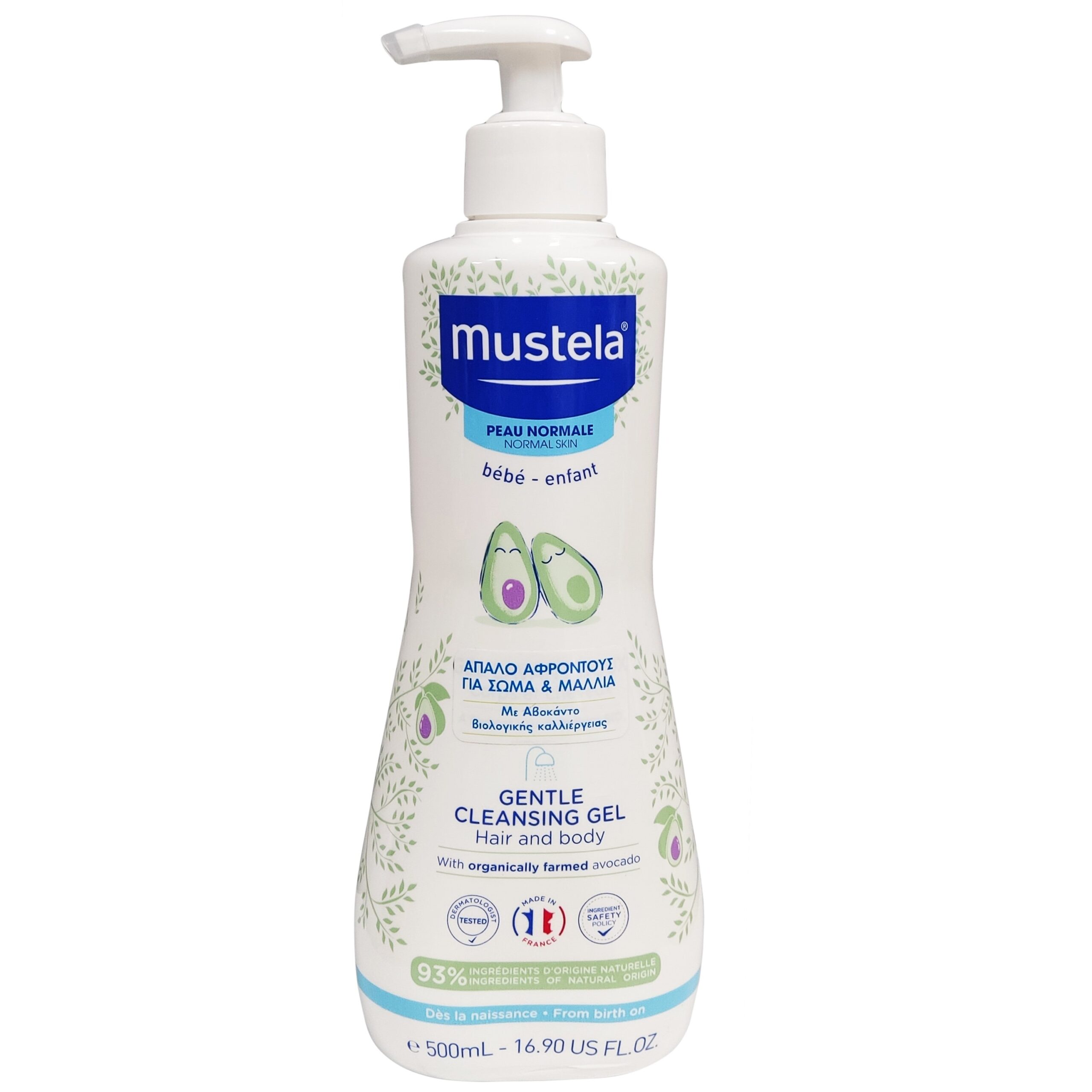 Mustela Gentle Cleansing Gel for Hair & Body Βρεφικό Παιδικό Gel Καθαρισμού για Σώμα και Μαλλιά με Αβοκάντο Βιολογικής Καλλιέργειας 500ml