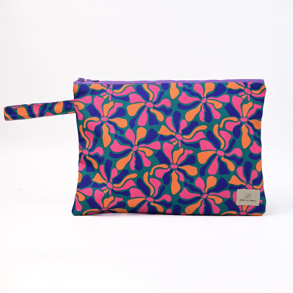 Medium 25x18cm / Large 35x25cm Top zipper closure Wrist handle Interior waterproof lining Out 100% Cotton Canvas